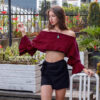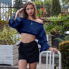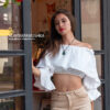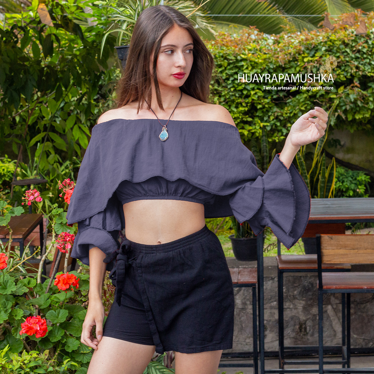 Blusa crop top con vuelos en el pecho y mangas, bolsillos escote elástico
