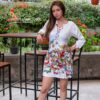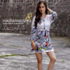 Blusón largo en rayón estampado, con tiras en la cintura, bonotenes y cuello camisero