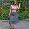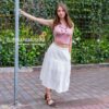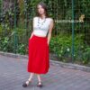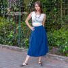 Falda en algodónn 100% con vuelos , caida en A hasta la rodilla, con bolsillos laterales, cierre en la parte trasera