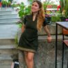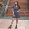 Vestido en algodón 100%, cuello en V, manga corta, faja andina decorativa en la falda